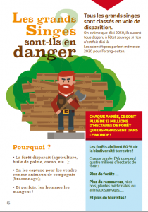 L’objectif : distribuer ces livrets aux enfants avant une animation pour qu’ils puissent déjà apprendre sur les grands singes.